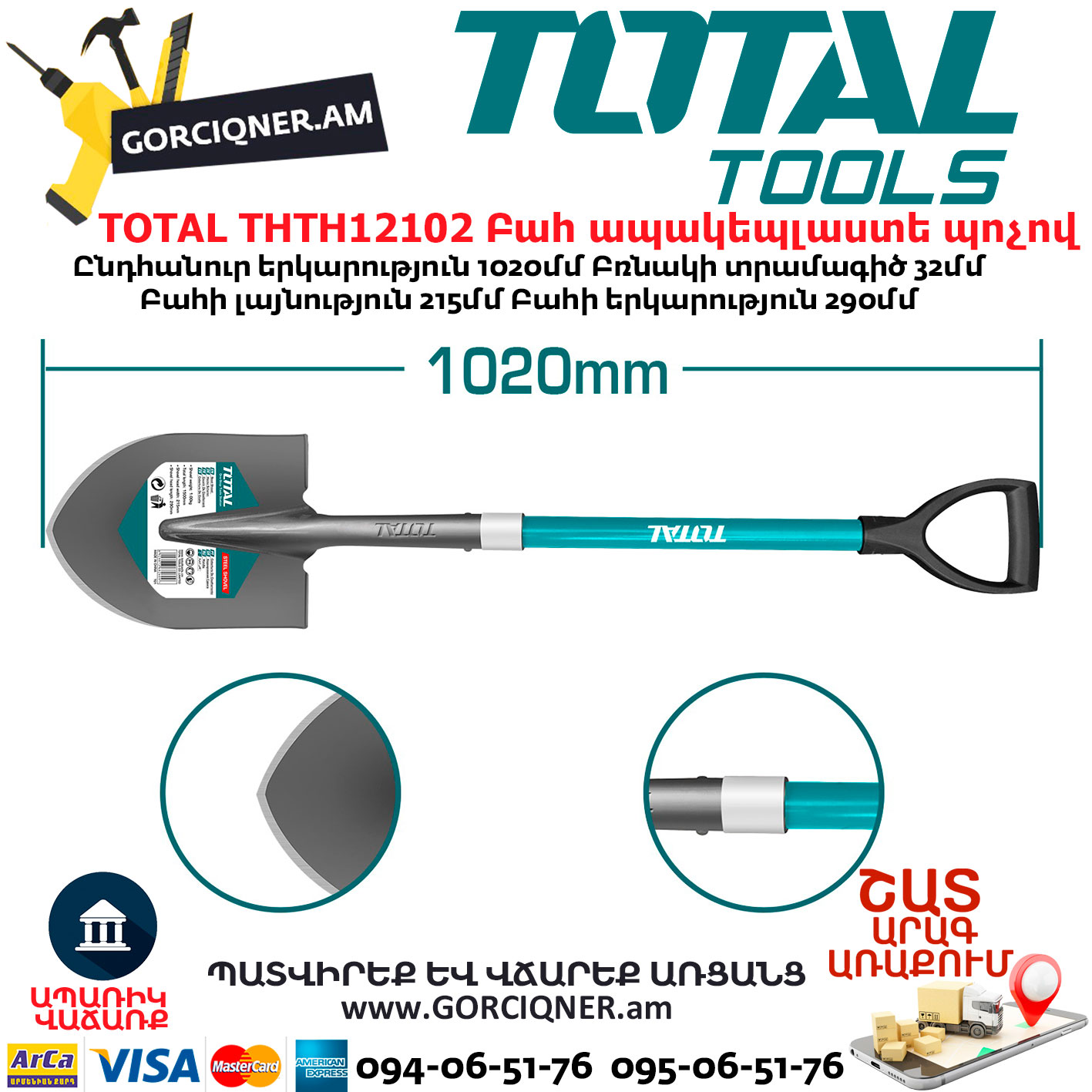 TOTAL THTH12102 Стальная Лопата С Рукояткой Из Стекловолокна 1020мм