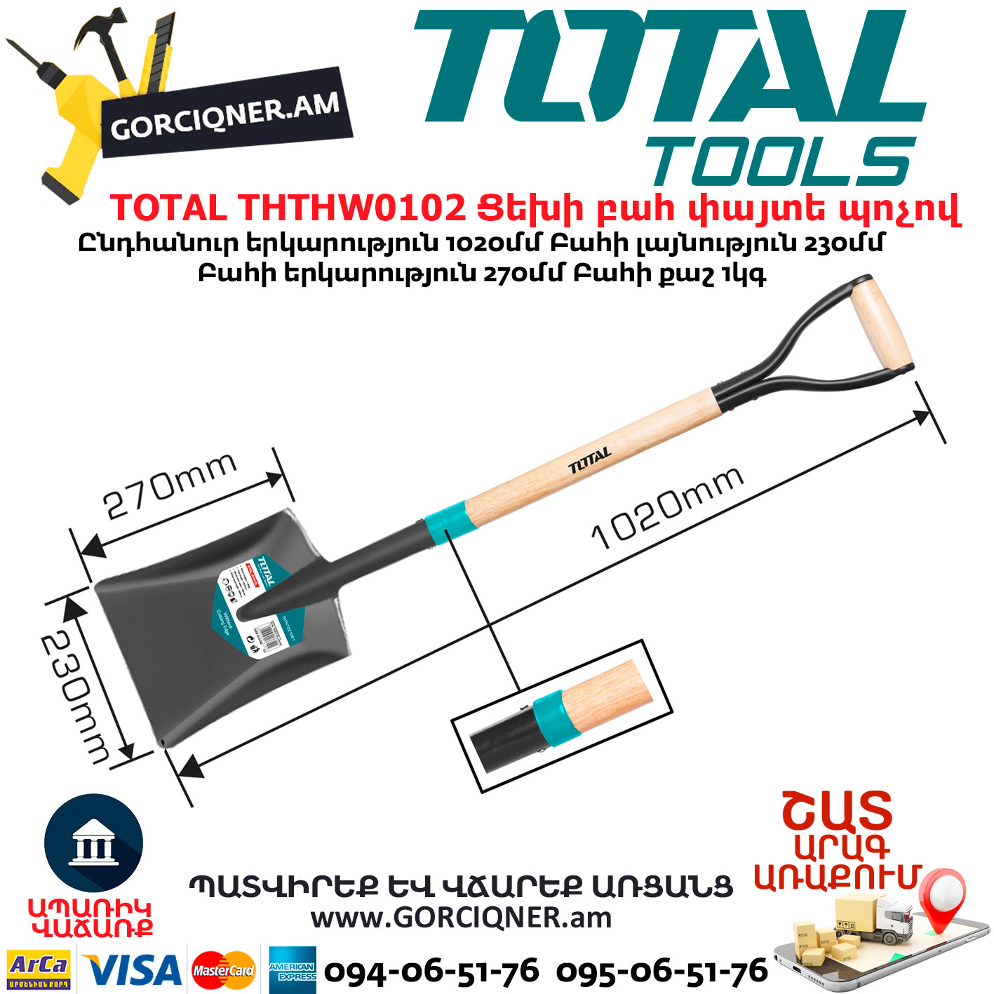 TOTAL THTHW0102 Стальная Лопата С Деревянной Ручкой 1020 Мм